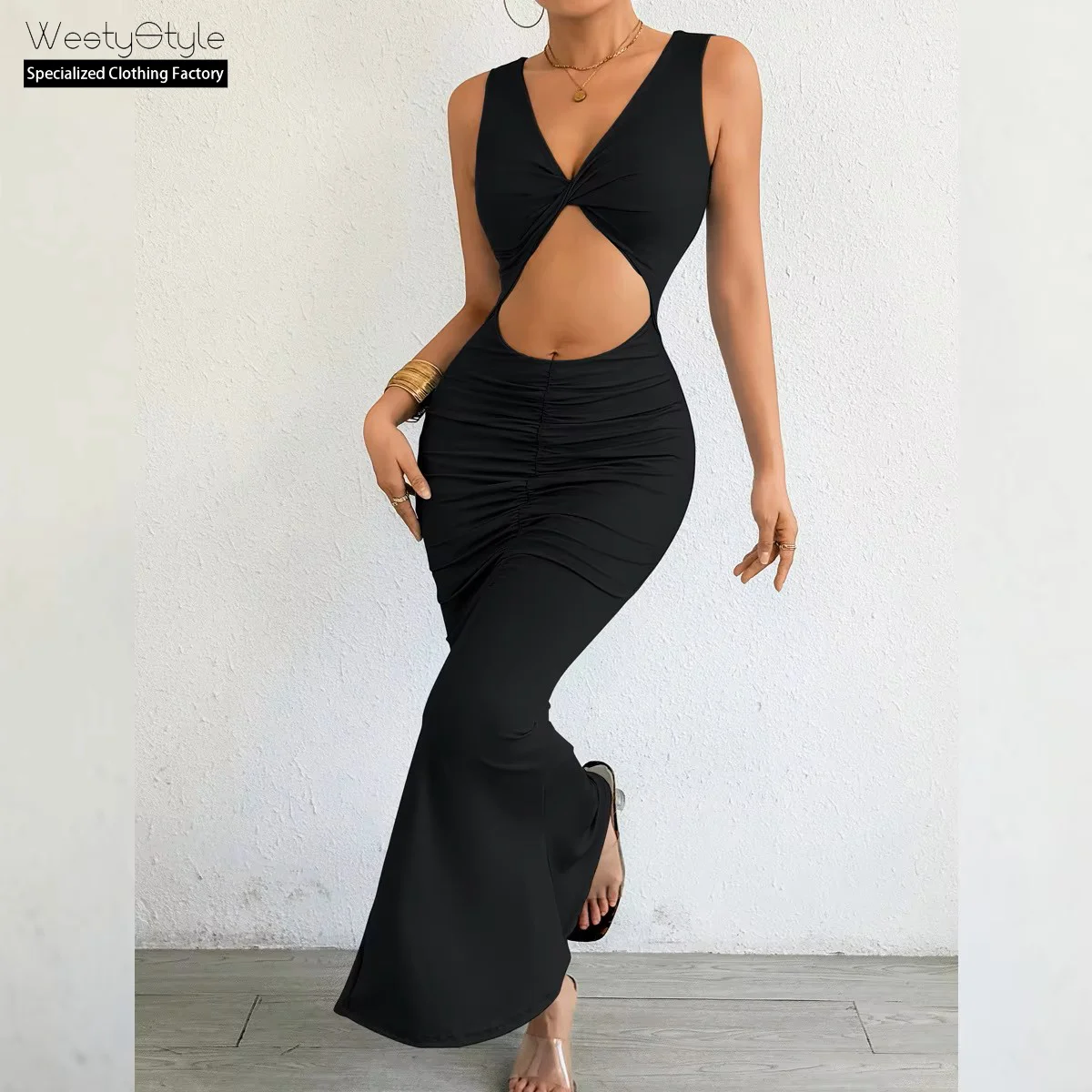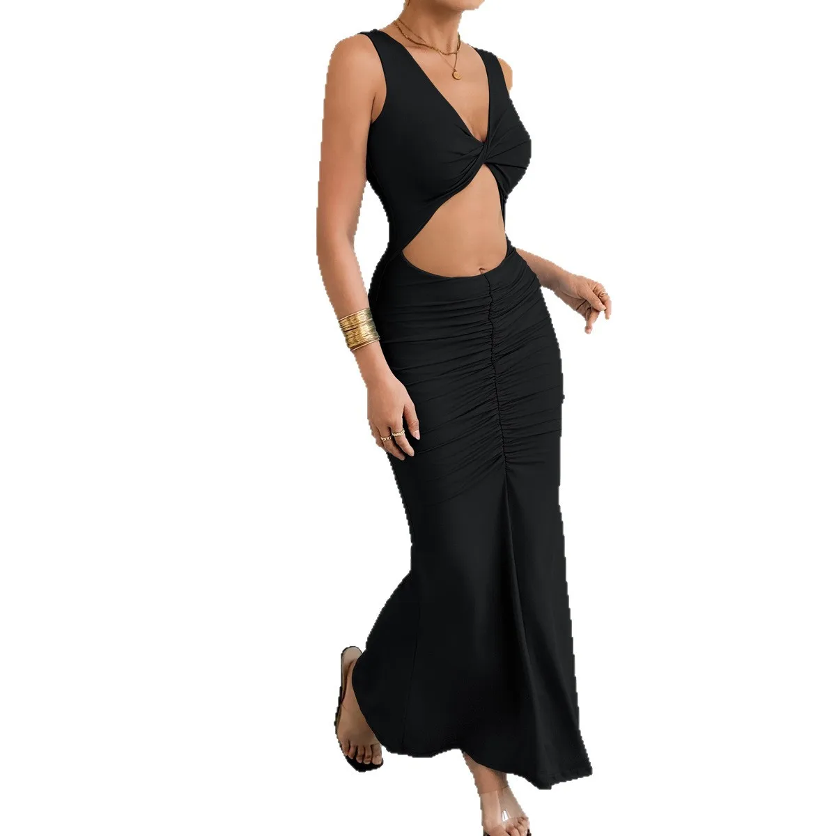Autumn Winter Women's Fashion European American Slim Fit Mermaid Bodycon Cross-Border Plain Dyed Natural Waist Long Floor-Length